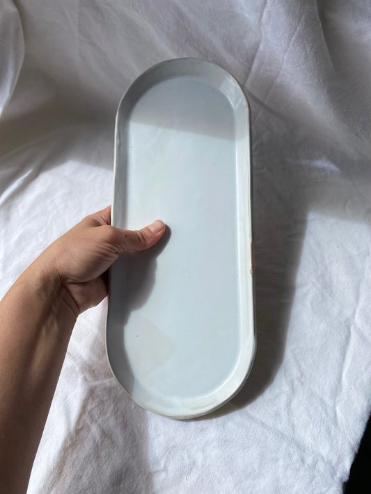 Plat Long - 34,50 cm - Grès Doux - Blanc Gloss