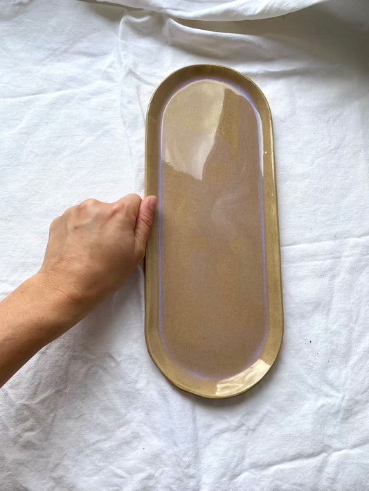 Plat Long - 34,50 cm - Grès Roux - Transparent
