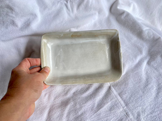 Plat Rectangulaire - 19*12 cm - Grès Doux - Blanc Gloss