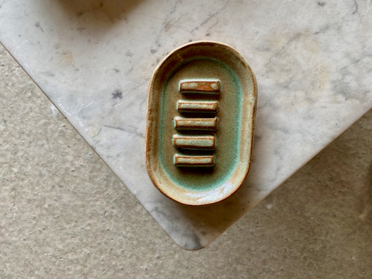 Porte-savon - Ovale - Grès Roux - Vert Céladon