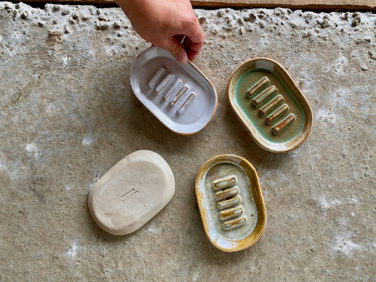 Porte-savon - Ovale - Grès Roux - Blanc Lunaire