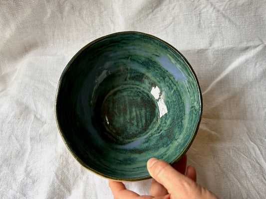 Bol à nouilles / Saladier - ⌀17*7 cm - Grès Doux - Vert Lunaire Foncé