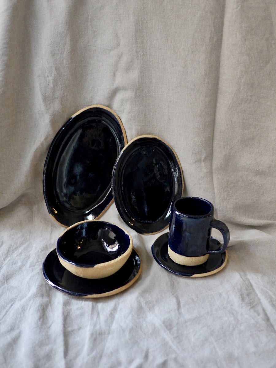 Conception et réalisation d'une collection de vaisselle personnalisée (mugs, bols, planches…) en grès pour l’épicerie-restaurant Provisions à Londres (UK).
