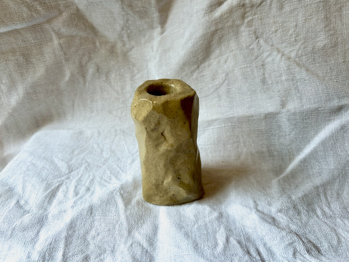 Sculpté à la main directement dans un bloc de grès gris, ce bougeoir fait écho aux roches escarpées modelées par le vent et les embruns, qui parsèment les côtes bretonnes.