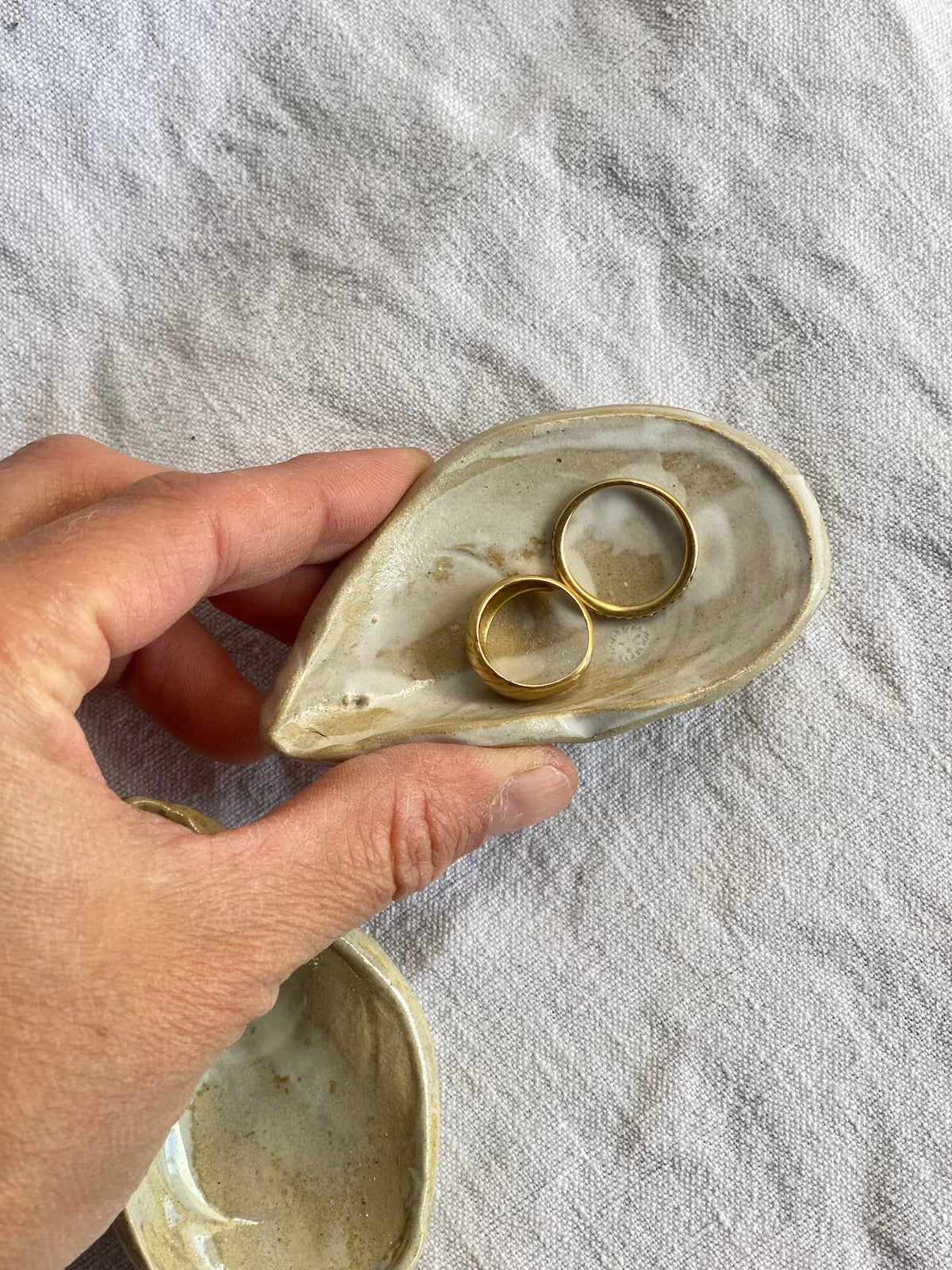 Une paire de petites coupelles Moules imaginées en hommage à la Bretagne, terre historique de mytiliculture. Elles font de parfaites coupelles à bijoux ou un duo de table salière/poivrière.