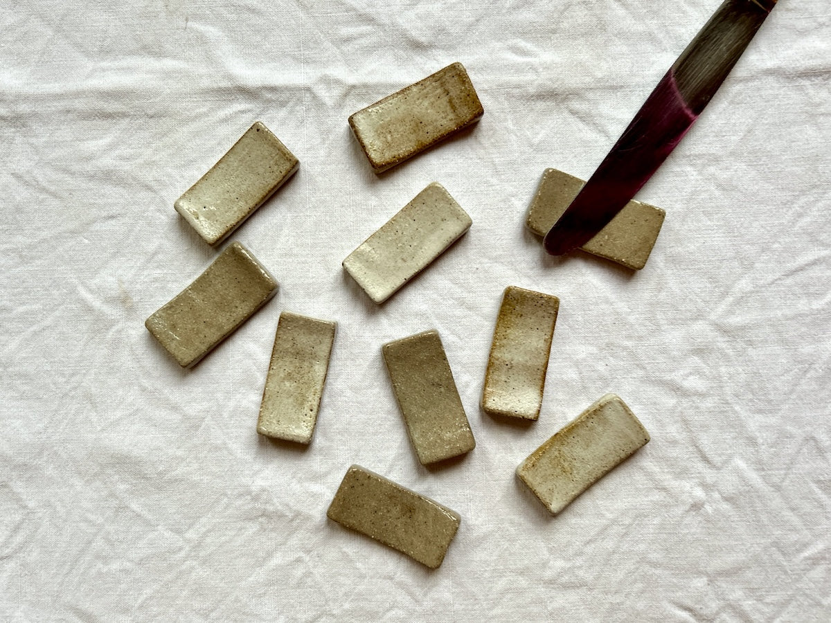 Chaque pièce est modelée à la main : les variations de forme et de tonalité font partie de leur caractère.